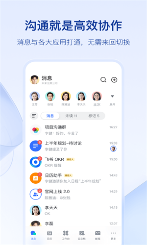 4、日历:便捷订阅同事日历,根据忙闲状态一键预约日程,规划个人日程,团队日程安排尽在掌握。