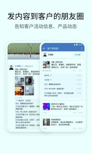 【客户朋友圈】活动信息、产品动态等内容可发表到客户的朋友圈,评论互动。