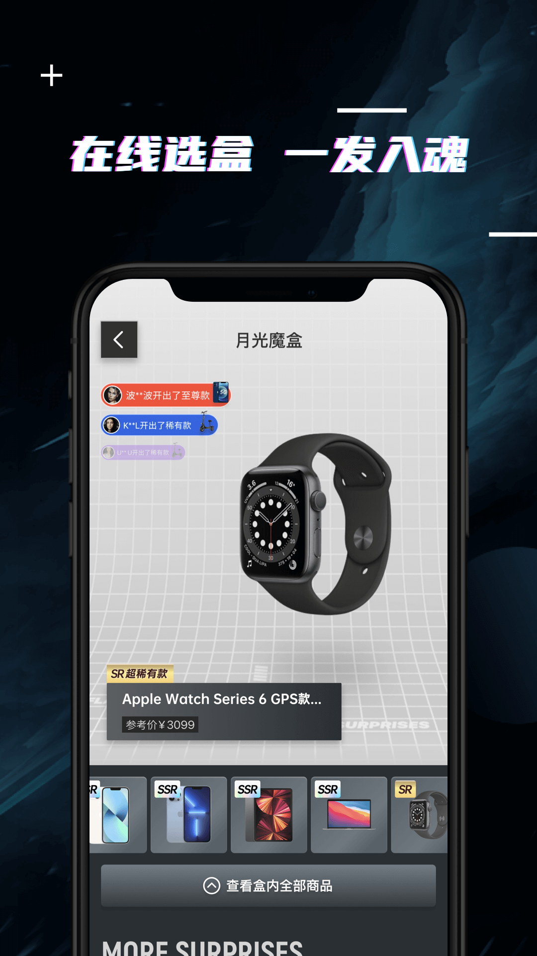 月光魔盒是一款汇聚了海量的正品授权商品的盲盒购物平台,月光魔盒让用户以开盲盒的方式抽取想要的商品,百分百实物商品,开到不喜欢的盲盒还能回收回血。