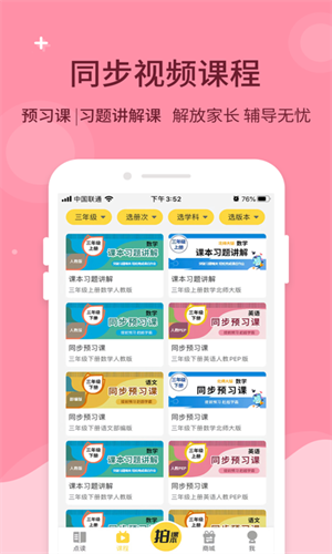 1、与学校课堂同步的视频课程,让学生随时随地进行同步学习。