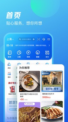 1、“首页”:快速访问首页提供娱乐、生活和金融服务等精选特色服务,让您轻松获悉最新产品和市场活动。