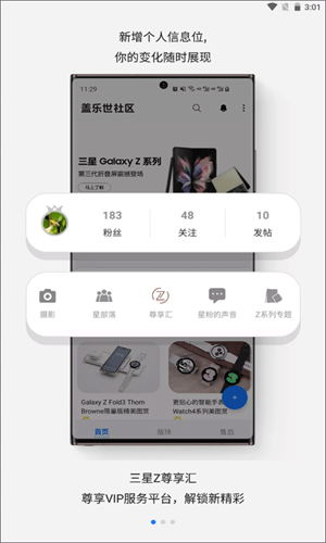 1、三星专为盖乐世系列的粉丝打造,让每个小伙伴可以在线互动沟通交流,查看三星盖乐世最新消息。