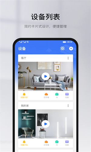 1、快速绑定视频设备,只需三步即可手机实时查看监控画面,随时分享给亲友来观看。