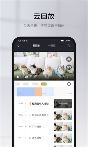 2、支持TF卡或云端录像存储,方便记录关键镜头,能够随时随地回放并收藏精彩瞬间。