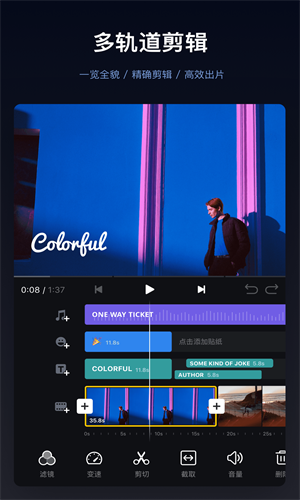 2、支持多种操作,例如滤镜、贴纸等,添加本地音乐和字幕,简单有趣。
