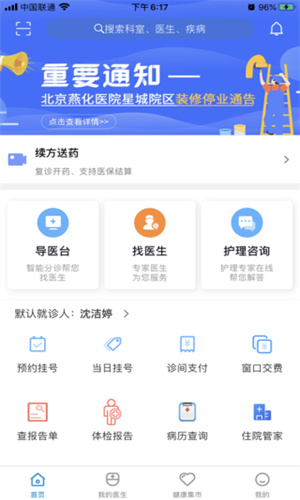 北京燕化医院APP是北京燕化医院推出的一款便民服务软件,以北京燕化医院为依托为广大患者提供方便快捷的服务,让您可以在手机上完成一系列繁琐的手续,这这里你可以预约挂号、当日挂号、报告查询、图文问诊、咨询服务节约了患者的时间,也能让医生高效的服务更多的患者,打造覆盖医院、医生、家庭的新型医疗服务模式!