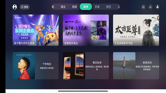 1、海量曲库适配电视系统的操作界面,给你更多的音乐来进行寻找,高清音乐视频也有。