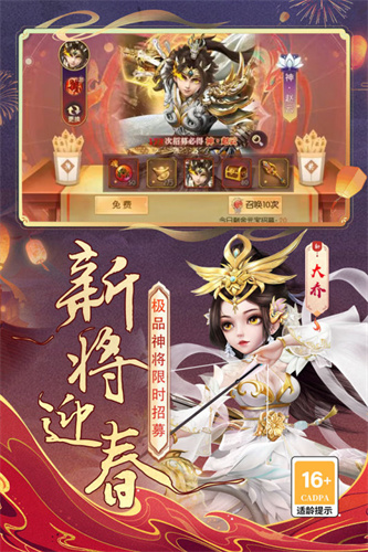 1、三国少年英豪齐聚,青史留名的武将皆可与君相伴,只需招致麾下。