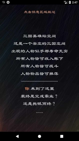 三国英雄坛是一款非常热门好玩的文字类三国策略游戏,采用全新的简约文字玩法策略剧情模式,超多的不同经典故事中能够体验到经典特色的三国中冒险战斗,同时三国英雄坛的剧情也十分丰富,这些相结合将给玩家塑造一个传统、经典的奇幻江湖世界。