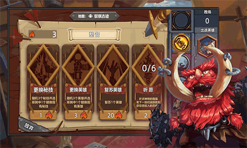 英雄牌是玩家的角色牌,共有12张,选择英雄会获他的天赋和血量,每个英雄天赋和血量各有不同,这将影响你的战斗方式。