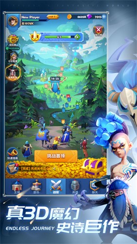 【轻松放置 离线奖励】 不肝不氪,尽情领略这魔幻世界 没有繁重的每日任务,没有复杂的每日副本,只有梦幻般的世界和愉快的冒险。