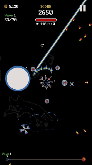 环形防御里面还有大量的的武器可装备到你的飞船上,不过玩家需要注意的是你的行星也是会自动旋转的,所以武器的弹道轨迹随之也会有一些偏转,玩家需要找到合适的角度才能打击到敌人,玩起来还是比较考验玩家的计算能力及智慧,并不是传统意义上的弹幕射击游戏,其核心仍然是生存,多类型的炮塔让战斗过程多了几分趣味,对于玩家的操作意识要求还是比较高的。