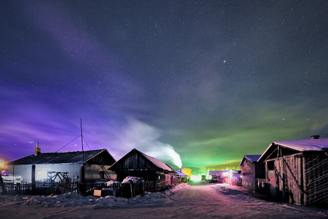 呼伦贝尔市鄂伦春旗阿里河镇,曾出现过一条条光柱从路灯、霓虹灯、探照灯、汽车灯等光源上拔地而起,旗杆般直插高空,平时是看不到这种景象的,它就是神秘的“寒夜光柱”现象。被称中国极光的“寒夜光柱”一束束色彩斑斓的光柱射向幽深的夜空,壮观而又梦幻。
